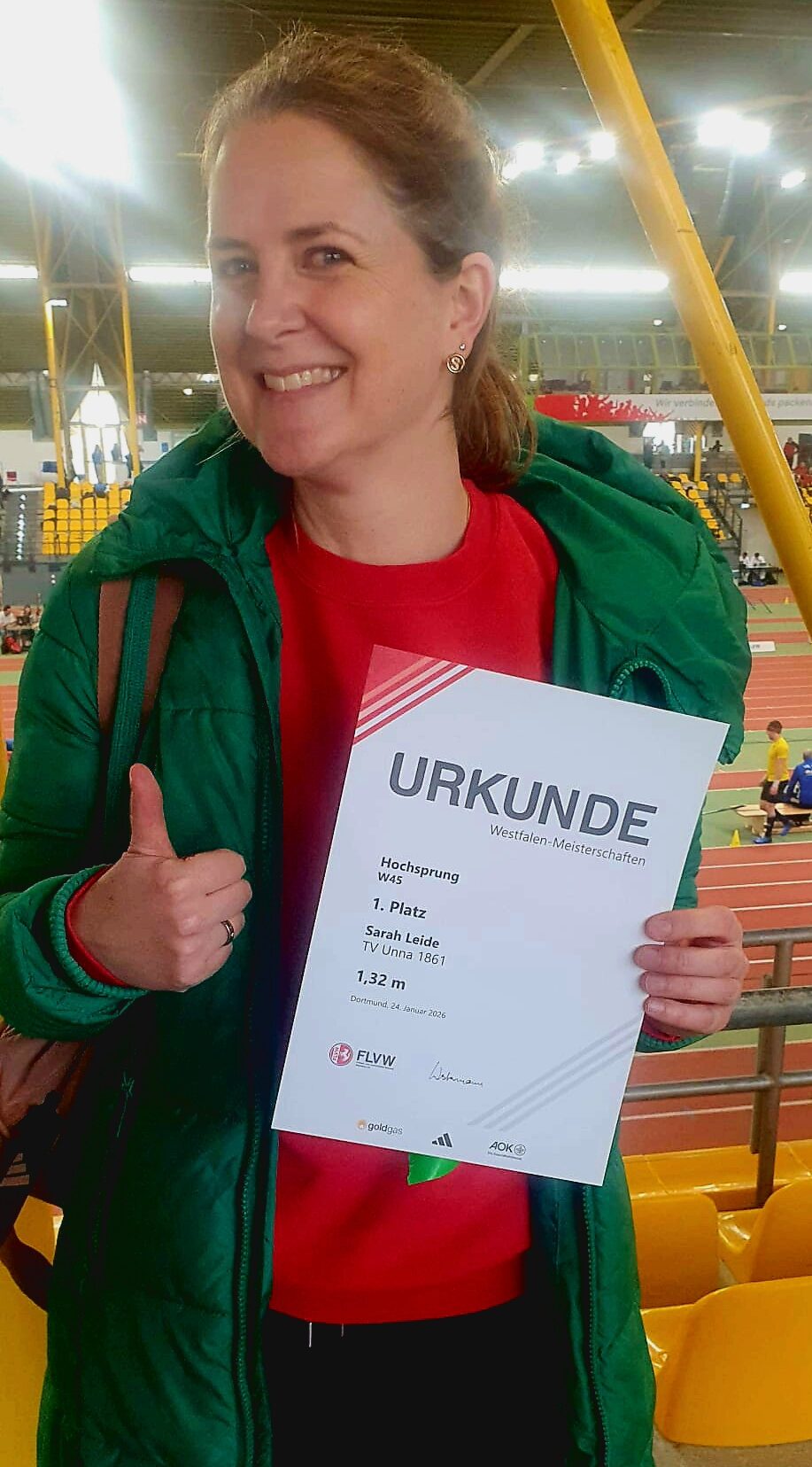 Ihr Wettkampf-Debüt nach 30 Jahren Pause gab Sarah Leide (W45). Recht neu in der Trainingsgruppe startete sie über 60m und im Hochsprung. „Mein Hauptziel war Spaß zu haben, und ich wollte unbedingt die Anfangshöhe schaffen.“, erinnert sie sich. Es wurde dann in einer blitzsauberen Serie ohne Fehlversuch schließlich mit 1,32m der Westfalenmeister-Titel. Damit erreichte Leide auf Anhieb die Qualifikation für die DM. Dankbar für das Coaching durch die Trainingspartnerinnen und begeistert von der Atmosphäre, resümiert sie: „Jetzt habe ich richtig Lust auf noch mehr Wettkämpfe“. Passend dazu nimmt die Trainingsgruppe nun Kurs auf die Deutschen Meisterschaften Anfang März in Düsseldorf. Doch auch Grundfitness für diejenigen, die keine Wettkämpfe bestreiten wollen, steht auf dem Programm.