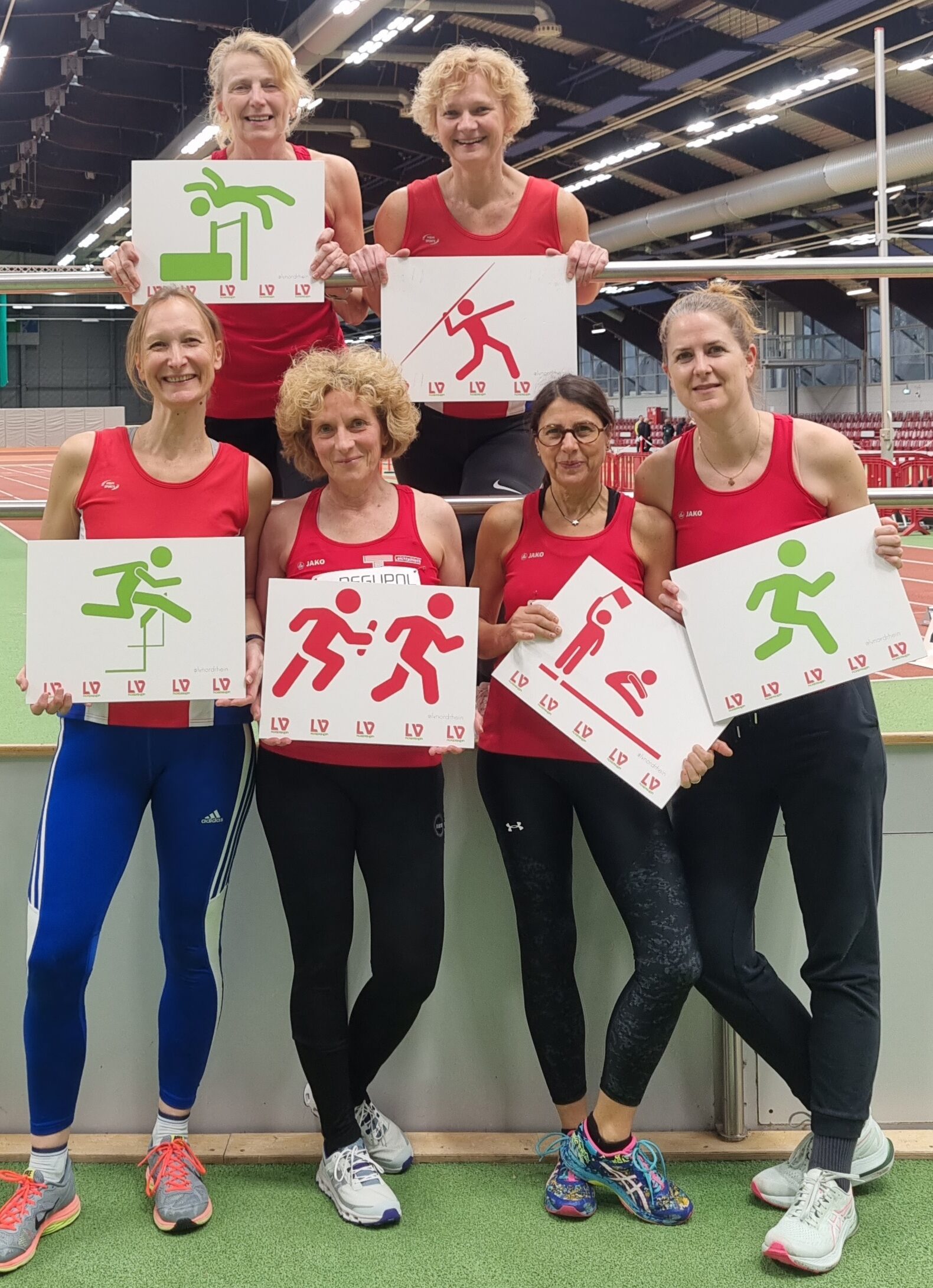 Nur Sarah Leide (W45) konnte verletzungsbedingt nicht an ihre Erfolge bei den Westfälischen Meisterschaften aus dem Januar anknüpfen, konnte aber die Atmosphäre in der Halle und den Tag mit den Vereinskameradinnen genießen und freut sich auf die DM.